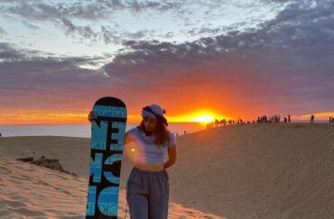 Experience the thrill of sandboarding on the golden dunes of Timlalin near Agadir. This fun and exciting outdoor activity lets you slide down soft desert dunes while enjoying breathtaking ocean and sunset views. Perfect for beginners and adventure lovers, sandboarding is easy to learn and suitable for all fitness levels. Whether you come with friends, family, or as a couple, this experience guarantees fun, laughter, and unforgettable memories in one of the most beautiful natural spots near Agadir.